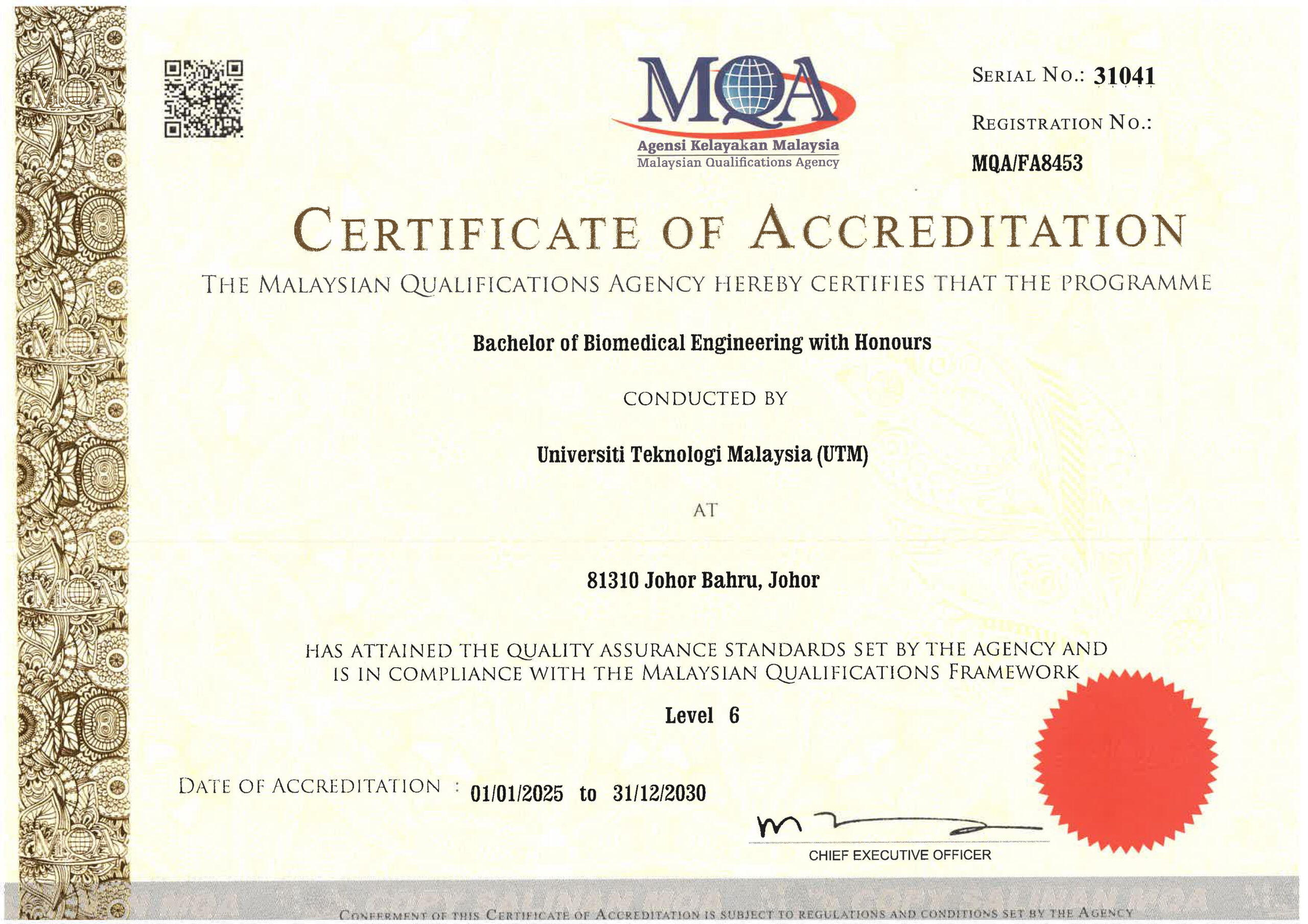 The Bachelor of Biomedical Engineering with Honours programme is designed to provide a comprehensive academic study that aim to equip and train the students with theoretical knowledge and practical skills in order to help
